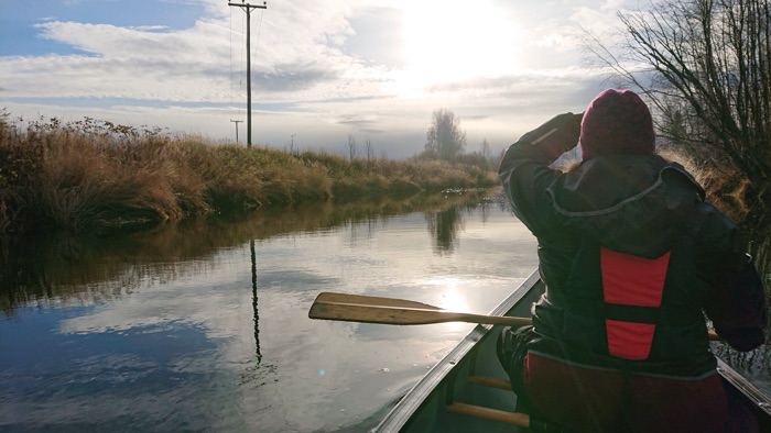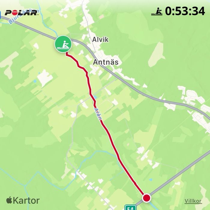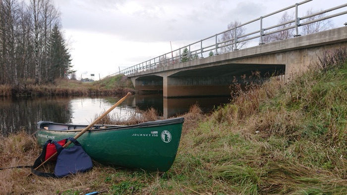 Dagens paddling med kanadensare skulle ske från Alvik till Ersnäs söder om Luleå. En paddling innan snön kom som väntades falla i stora mängder under natten och söndagen. Startpunkten låg precis efter bron över Alån till vänster mot Alviksgården. Där fanns en parkeringsficka. Slutpunkt var en grusväg strax norr om där Alån korsar E4:an på nedre sidan. Syns inte på kartan. Grusvägen går ner mot vattnet från grusparkeringen. Sträckan för paddling var ca 4,5 km och tog ca 50 min för oss exklusive rast.