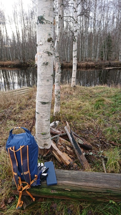 Fanns en timmerstock vid rastplatsen där vi kunde sitta och inta vår matsäck.