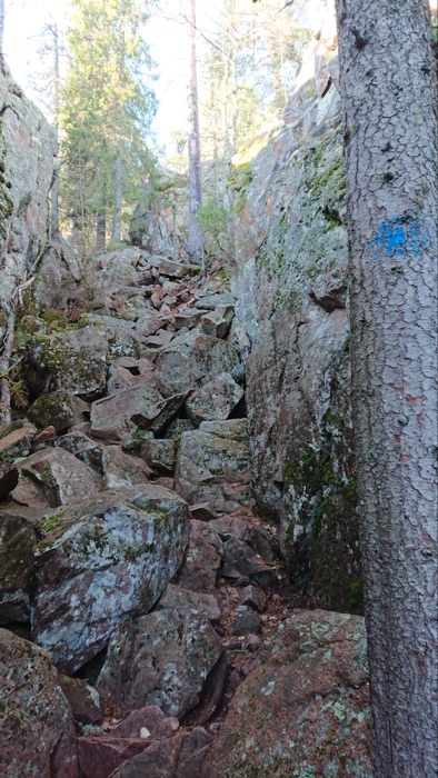 Vände tillbaka mot fastlandet och siktade på Tärnättvattnen via leden västerut via en brant stigning. Leden gick genom en skreva med klippblock. Tung vandring med tung packning.