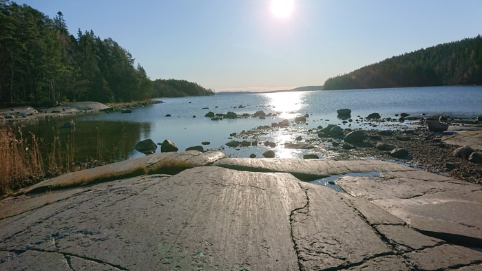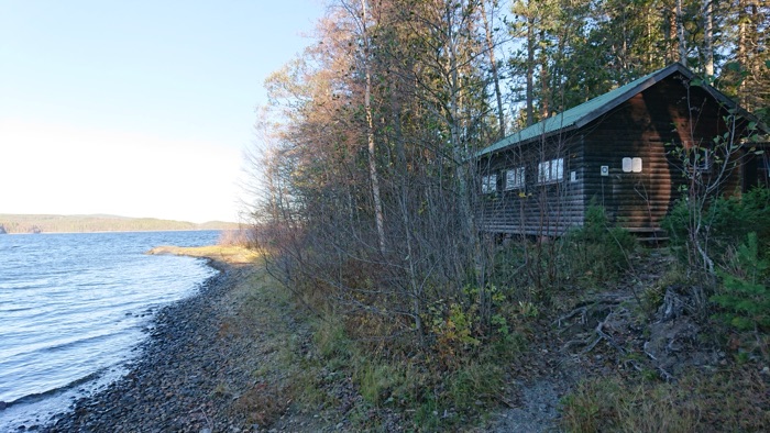 Gick ut till den sista lilla stugan med två bäddar vackert beläget i en vik. Såg några sportfiskare på håll. Valde att inte stanna där ute för övernattning då det var tidigt på dagen.