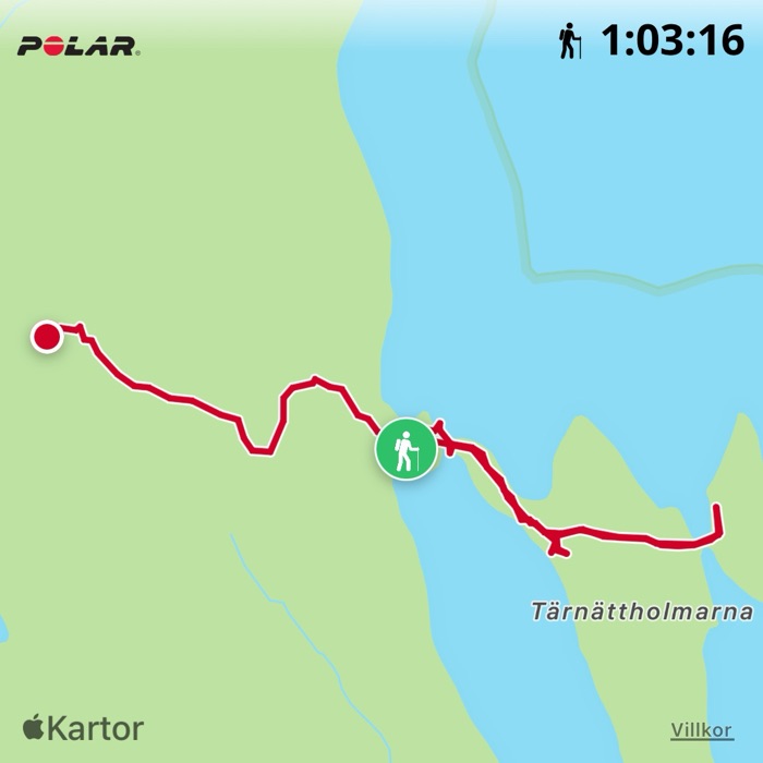 Fick ta och vila och dricka vatten vid en vacker utsiktsplats. Njöt av utsikten och såg Tärnättholmarna från håll.