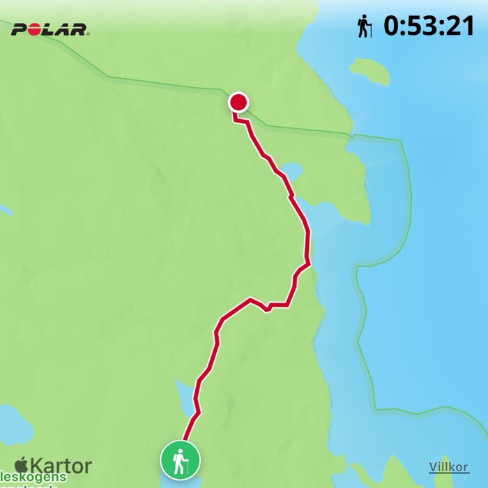 Jag hade lämnat in min Gore Tex jacka på lagning på Sömnadskollektivet i Luleå. Hade använt dem en gång tidigare och jag var jättenöjd. Tycker om att det är ett socialt arbetsintegrerat företag. Det är ett bra hållbarhetstänk att laga istället för slänga. Det är så pass bra jackor som varit trasiga så det var värt att lämna in dem för lagning. Så på denna tur använde jag min nya morotsorangea allround jacka som sportbutiken kallar den. Materialet är nog inte lika hållbart som Gore Tex. Den är billig men enkel. Framfickorna hamnar mitt i midjebälte på ryggsäcken. Jag blev blöt inne i jackan under denna regniga tur, finns ingen innerficka och det är inga dragkedjor under armarna för att öppna upp för ventilation. Jackan passar bra att cykla med till jobbet. Kommer använda min välanvända Gore Tex jacka i fortsättningen på mina vandringsturer.