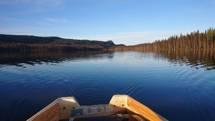 Tog roddbåten till Indersti där min far är uppvuxen. Det låg endast lite is vid stranden annars hade värmen och stormen tagit bort isen. Ryggsäcken var signalröd och den stickade mössan var orange dagen till ära. Bra färger under älgjaktstid.