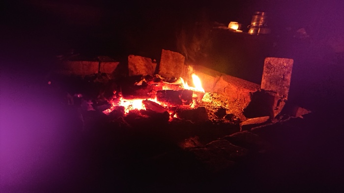 Vaknade vid fyratiden när elden slocknat och vinden hade ökat i styrka under natten. Jag frös lite i min sovsäck. Tände en till brasa och värme och rökutveckling ökade.