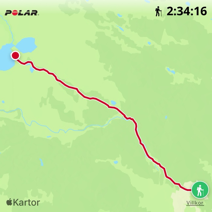Tog en fikarast i Mansonstugan med Wasa sport med mjukost salami och te. Mansonstugan ligger endast 4 km från parkeringen. Såg att virkaren till min mössa som han döpte till ”Patrik stjärna” skrivit i gästboken 2017. Jag hittade mitt eget inlägg från min första Muddustur midsommar 2016 som gick rutten: Solaure-Mansonstugan-Muttosluoppal-Nammavaare-Solaure. Minns att jag då var helt slut i kroppen och fötterna och den gamla ryggsäcken skar in i axlarna. Det var varmt och mycket mygg. Orkade inte hela sträckan Nammavare till Solaure. Åt då i stugan och vilade sen så jag skulle orka till bilen. Idag hade jag bättre ryggsäck och förhoppningsvis lite mer ork än då. I gästboken läste jag att gäster till parken skidat in i på myrarna 31a oktober i år. Det var mer snö då än denna helg.