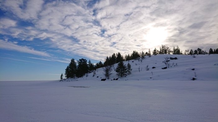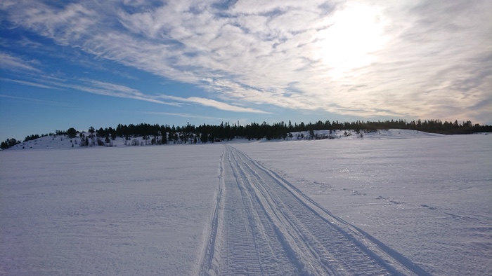 Funderade på hur jag skulle skida mot packisen och valde att skida tillbaka på skoterleden och sen riktning mellan Björkskäret och Kluntarna och rakt ut mot havet.