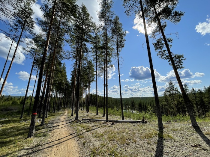 Jag ville göra ett nytt försök med att cykla Isälvsleden på MTB. Isälvsleden är en 60 km vandrings- och MTB-led mellan Vindeln och Åmsele i Västerbotten. Leden går genom ett mäktigt landskap format av inlandsisen för flera tusen år sedan. Området karaktäriseras av spektakulära rullstensåsar, dödisgropar, sanddyner och en turkosblå tjärn. Friluftsfrämjandet Vindeln underhåller leden med skyltar, dass, vindskydd och stugan vid Missutjärn. De tillhandahåller ved till vindskydden med tillhörande grillplatser. Tanken var denna gången att cykla mellan Hällnäs och Åmsele som benämns som den bästa delen av Isälvsleden för MTB. Jag skulle dela upp sträckorna över flera dagar eftersom jag skulle behöva cykla tur och retur på leden. Tänkte övernatta nära bilen.