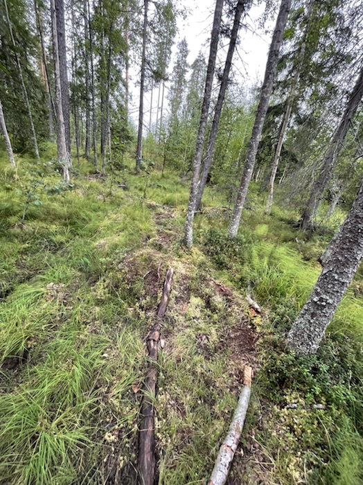 Efter det styrde jag in på delen av leden som rekommenderades för vandring. Leden gick över kalhyggen, myr och blöta partier. Det var en hel del rötter och sten på denna del av leden. Jag fick leda cykeln förbi vissa partier. Jag förstår att den inte rekommenderas för MTB cykling. Skulle inte cykla denna del igen.