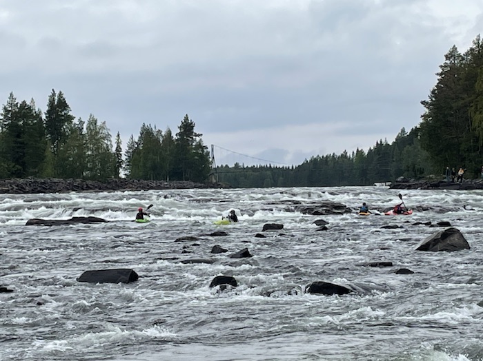 På vägen tillbaka norrut efter väg 363 stannade jag till vid Mårdseleforsen där Vindelälven delar upp sig i flera biflöden. Där finns en fin restaurang som behöver förbokas. Det finns hängbroar och fina rastplatser i området. Fick se forspaddlare som tog sig genom den strida forsen.