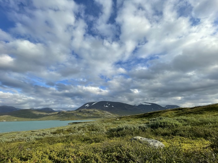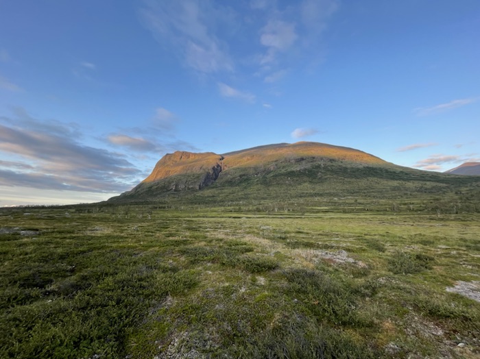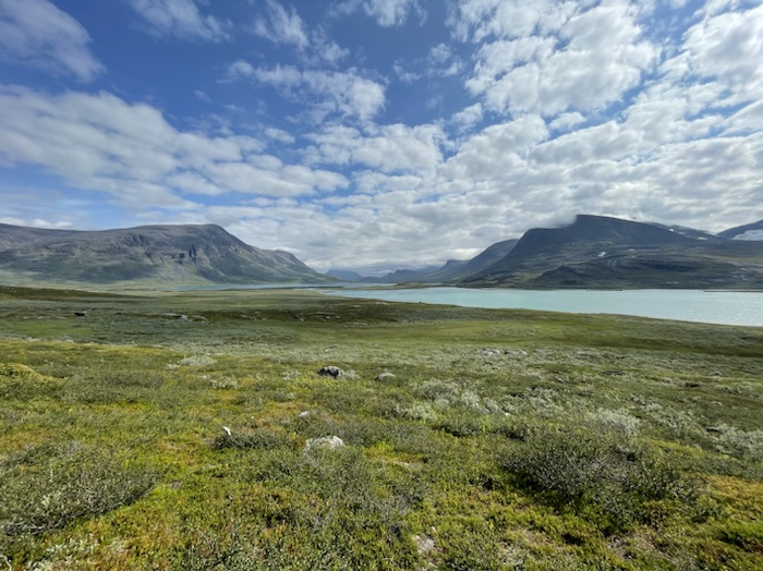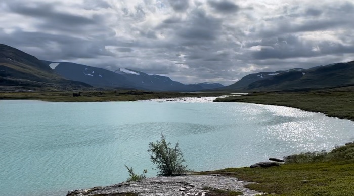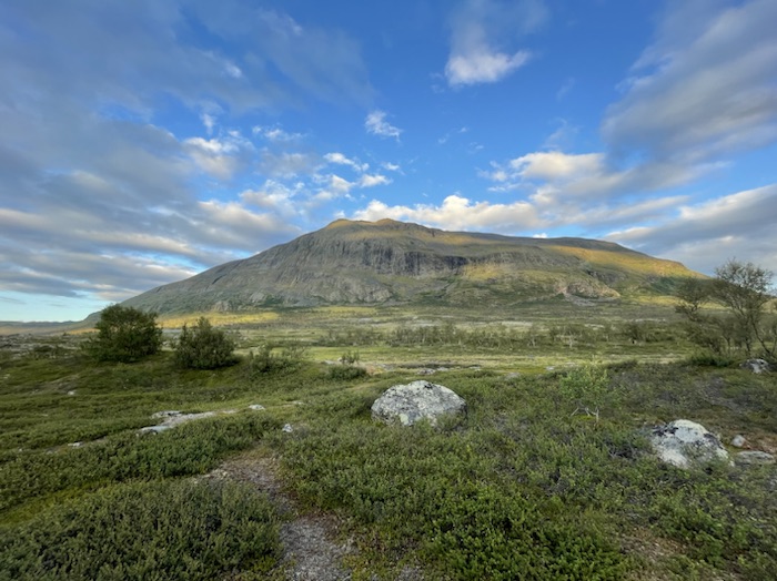 ”Temperaturen var 16 grader och det var soligt och blå himmel. Jag bytte om till shorts och kängor och krängde på mig ryggsäcken. Startade min vandring på Kungsleden där jag en kall januari åkt turskidor till vindskyddet och en bit till. Jag möttes av barnfamiljer, dagtursvandrare och några med större ryggsäckar.”