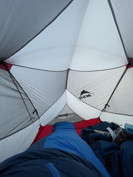 ”Vi drog oss tidigt tillbaka. Utsikten från tältet var fenomenalt vacker. Jag somnade ovaggad strax efter 20:00.”