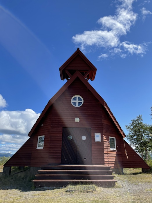 Jag tog det tråkiga beslutet att avbryta min vandring och ta bussen till Kiruna. Besviken men lättad i det stora hela av att det var tältpinnen som bröts av och inte benet. Men först gick jag till Nikkaluokta Kapell innan bussen avgick för att fotografera där morfar varit.
