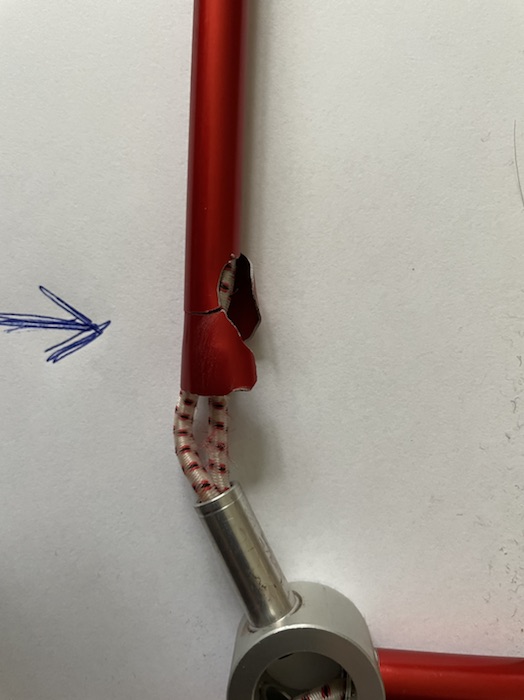 När jag plockade ner tältet gick tältpinnen av som går in i en ring med tre pinnar. Jag provade laga med silvertejp men det höll inte. Bröt av den trasiga delen och sköt in i pinnen men tältpinnen bröts av igen. Jag insåg att jag inte kunde fortsätta min vandring med ett trasigt tält. Tältet skulle inte hålla i hårda vindar och kunna rivas sönder. Svårt att boka stugor med så kort varsel och hade inte budget för det.
