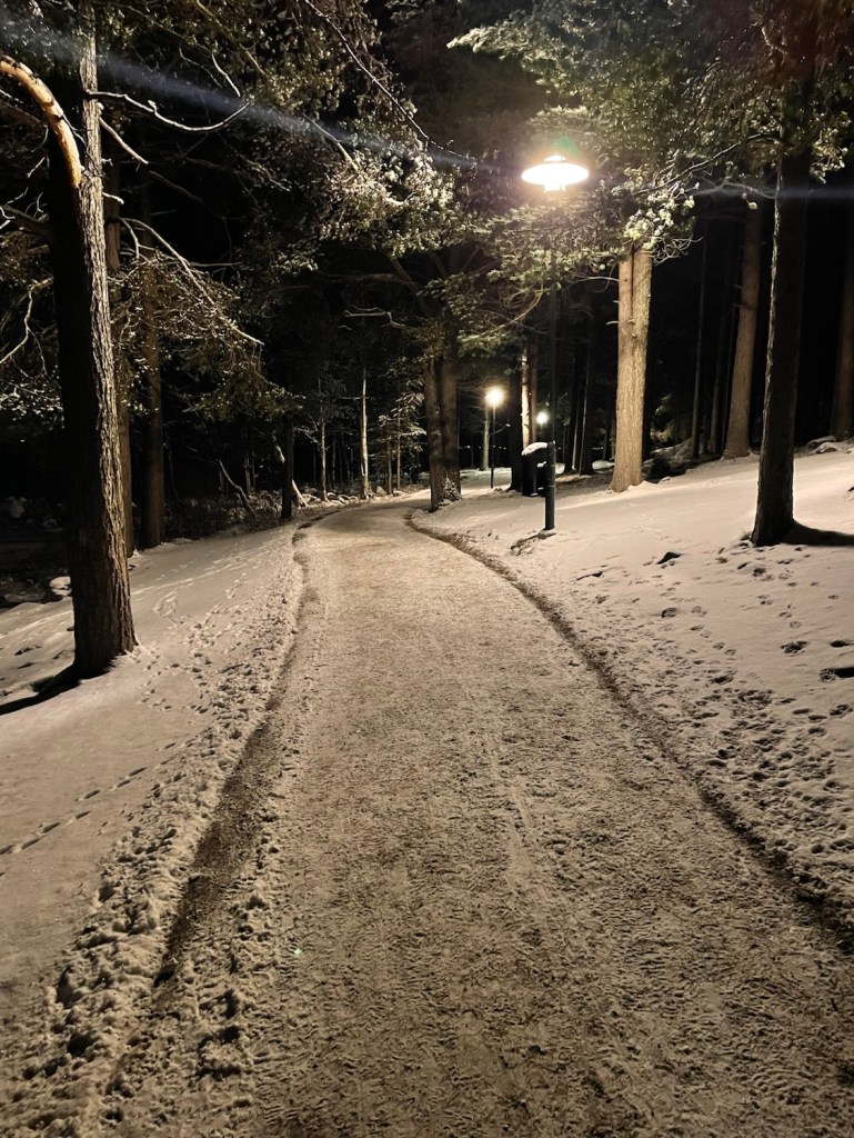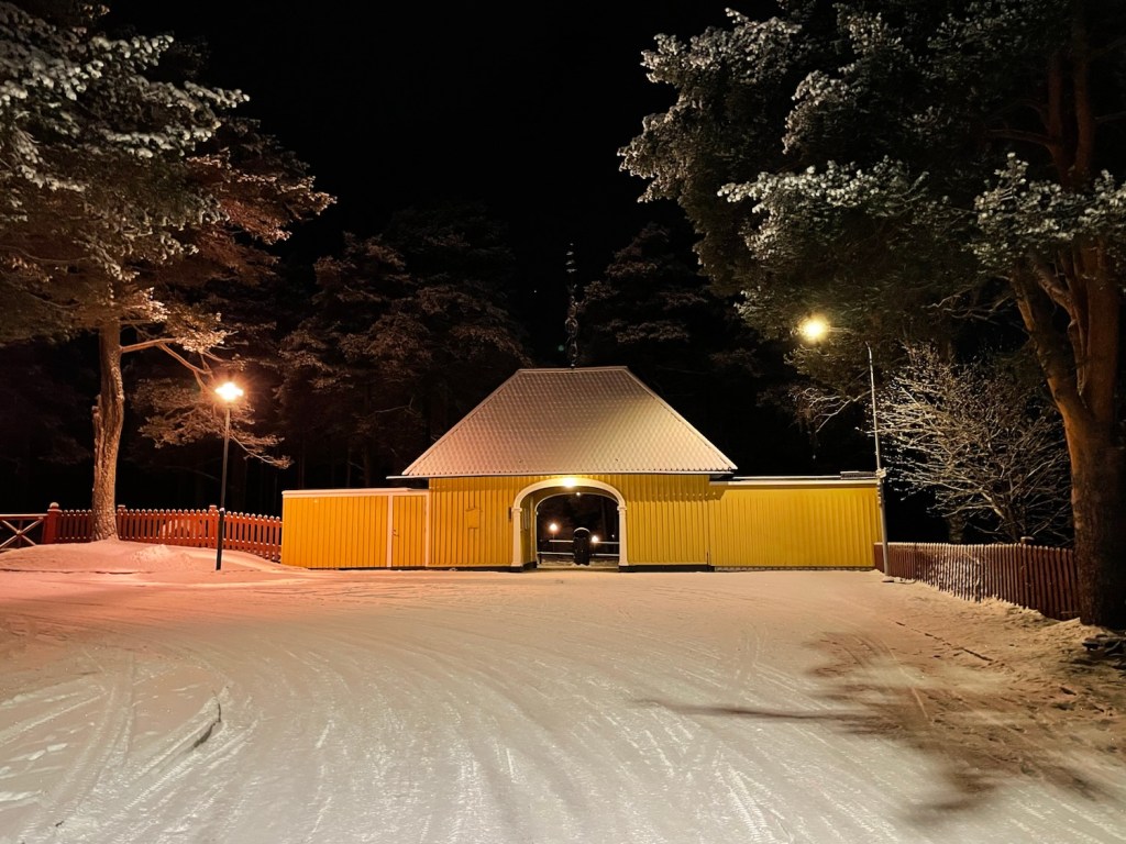 Ljusen från andra sidan vattnet mot Storheden och Karlsvik glittrade i mörkret. Isen närmast land knakade och smällde ibland högljutt. Längre ut sjöng isen en gång.