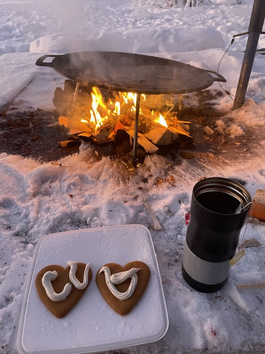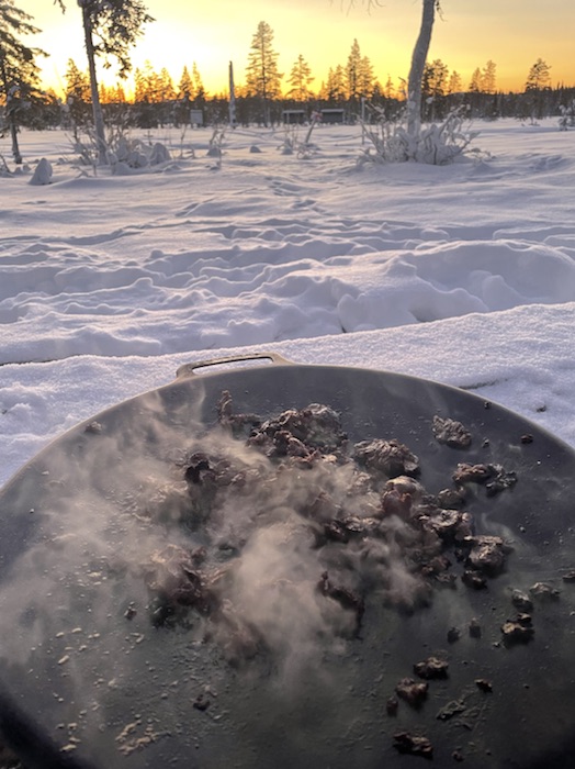 Det blev gott med den salta lättrökta souvasen mot de syrliga lingonen. Fingertopparn domnade dock bort i kylan.