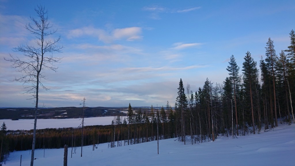 Åkte en hel del skidor kring min stuga under vårvintern. En höjdpunkt som jag inte skrev om var skidturen till Vitträsket i Björnbergens naturreservat via Antbergsträsket. Jag stannade till vid Vitträsket och åt medhavd soppa i mattermos. Fortsatte sen att åka skidor österut på skoterspåret. Strax innan Björnbergsvägen var vyn mäktig mot Valvträsk och Råneälvdal. Åkte skidor via Björnbergsvägen ut till landsvägen och tillbaka via Antbergsvägen. Det här var en riktigt mäktig skidtur i mitt närområde. Kommer utforska mer av den sidan av älvdalen.
