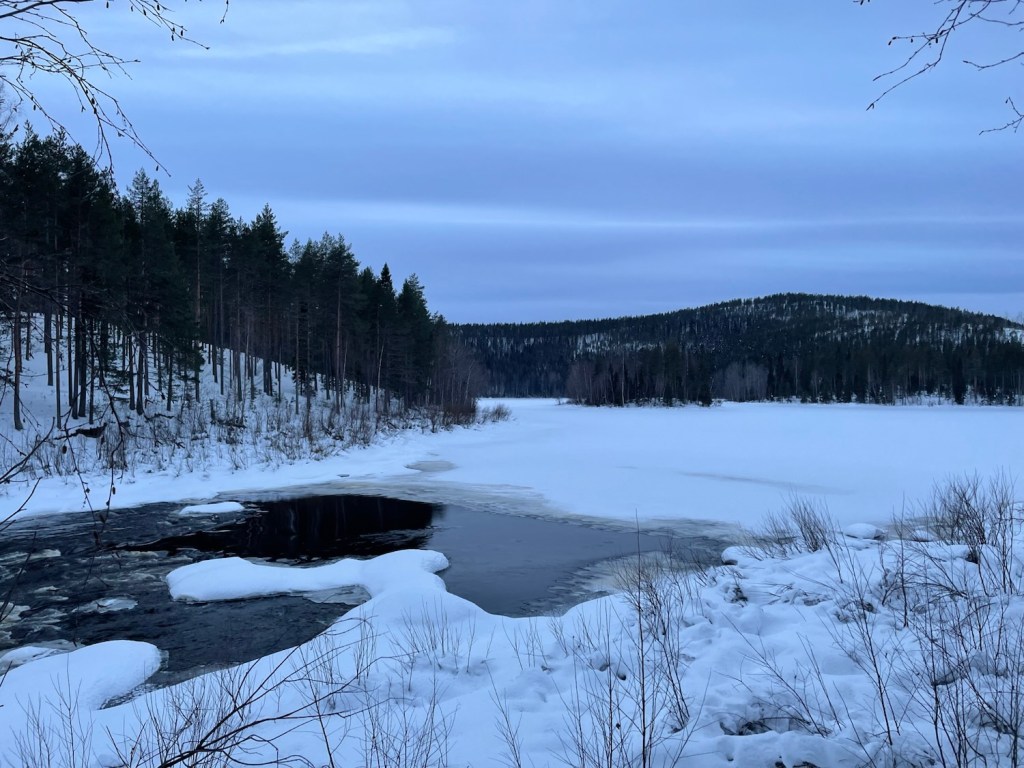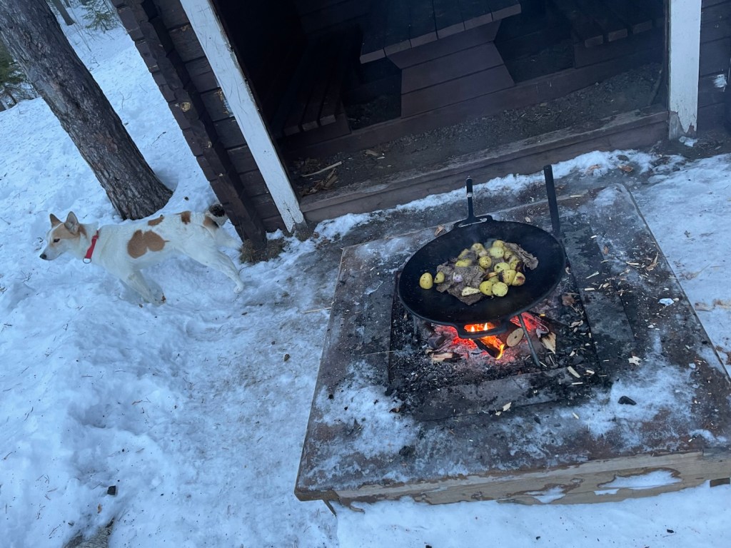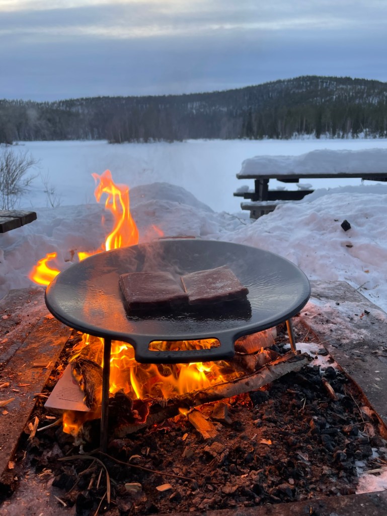 Receptet var Norrländsk wok. Norrland möter Indien. Röran heta lingon gav sting till rätten. Till efterrätt grönt te och 70 % mintchoklad. Forsen brusade i bakgrunden. Mätt och belåten körde jag sen till min stuga.