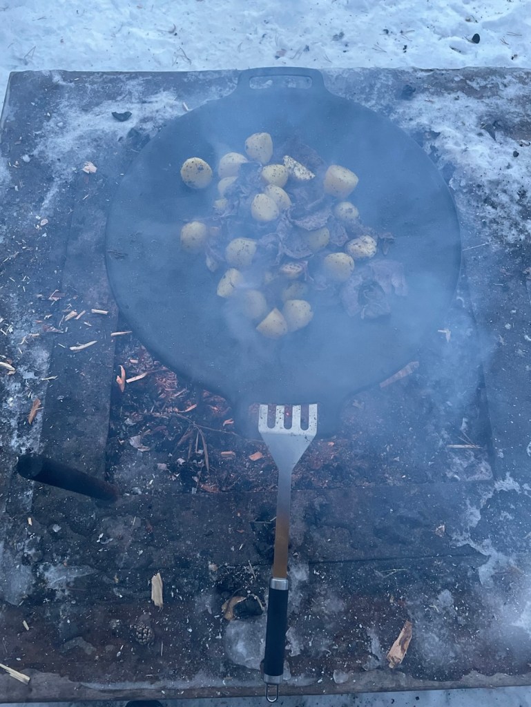 Hade med mig förkokt potatis till rätten. Glömde den rivna vitkålen men det gick lika bra.