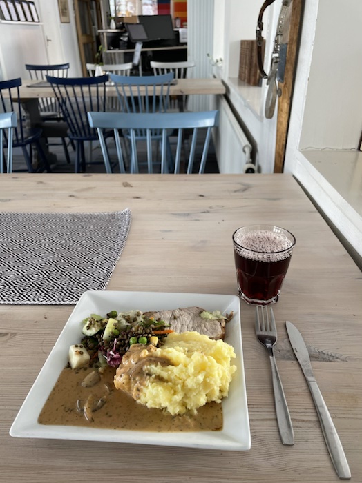 Hade tänkt äta lunch på Björkliden men det var lite tidigt för det och ville inte sitta i den fullpackade foajén. Körde till mitt nästa natthärbärge Abisko Turiststation och köpte en god lunch. Det var få lunchgäster när de öppnade 11:30. Skönt med lugnet.