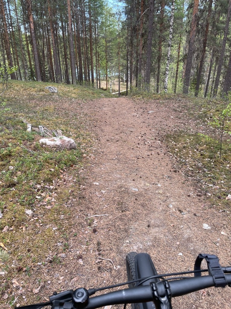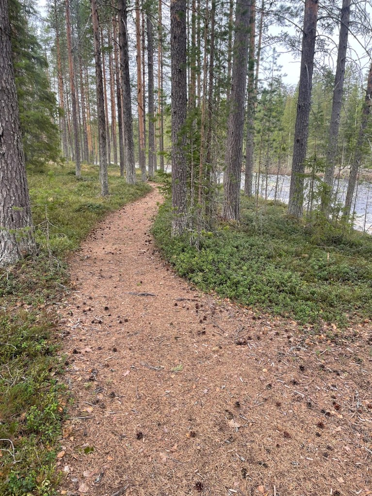 Ville cykla lite längre denna dag för att träna på längre distanser än kvarten till jobbet. Jag hade antagit en utmaning från min vän Thomas att cykla Nationalälvsleden mellan Överkalix och Kalix på 90 km med MTB. Loppet skulle gå på grusväg och stigar. Packade min camelback med ett äpple och fyllde vattenblåsan. Cykeln var nyservad och gick som en klocka. Cyklade norrut mot Klingersel och vek av på stigen efter Råne älven mot rastplatsen vid Brändbergsfallet.