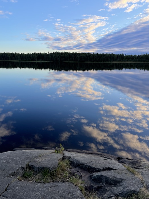 Luften var nu svalare mot huden. Fiskar slog på sjön. Skräddare spang på vattnet och skapade små ringar på den spegelblanka ytan. Molnen drog över sitt gråa draperi. Sporadiskt syntes de gröna löven skifta till gult.