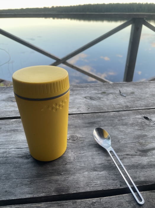 Åt soppan och njöt av lugnet. Drack sen te och åt fruktstänger.