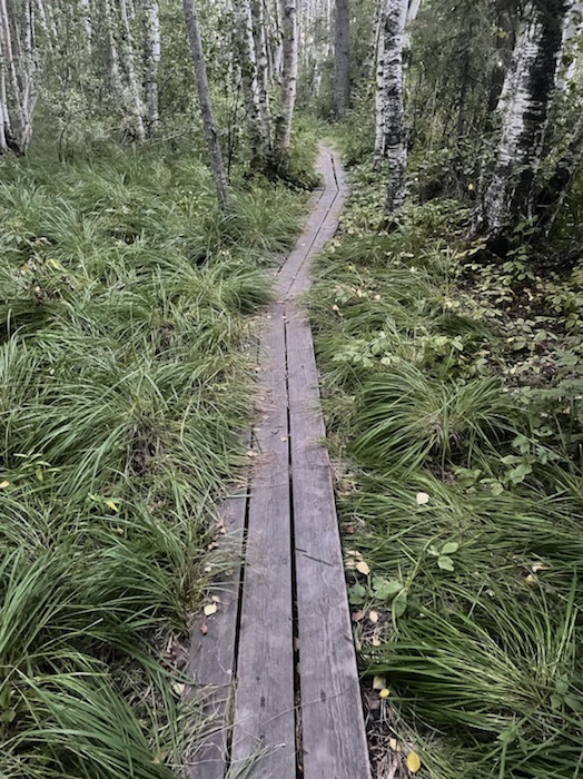 Jag gick till den norra raststugan 1100 meter norr om parkeringen.