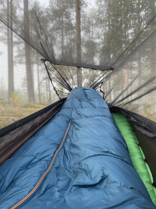 Gick sen och lade mig i hängmattan i min nya sovsäck. Skrev ett långt email och somnade halv ett.