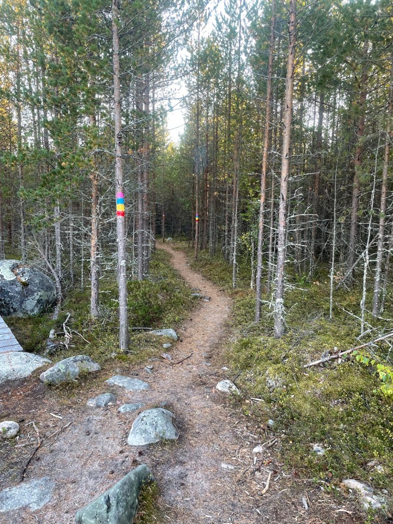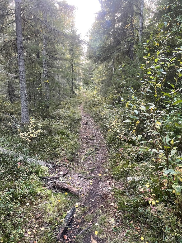 Det var rolig och ganska varierad cykling på den gula leden. Ibland stod de unga träden tätt vid leden och vid något ställe var det äldre och grövre tallar. Leden var föredömligt skyltad så det var lätt att finna vägen. Jag blev erbjuden att duscha i campingen när jag kom fram. Det var generöst och tacksamt. Styrde sen kosan till Luleå för att se valutgången på TV.