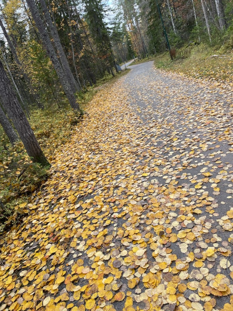 Löven hade fallit på sina ställen och skapade en gul matta.