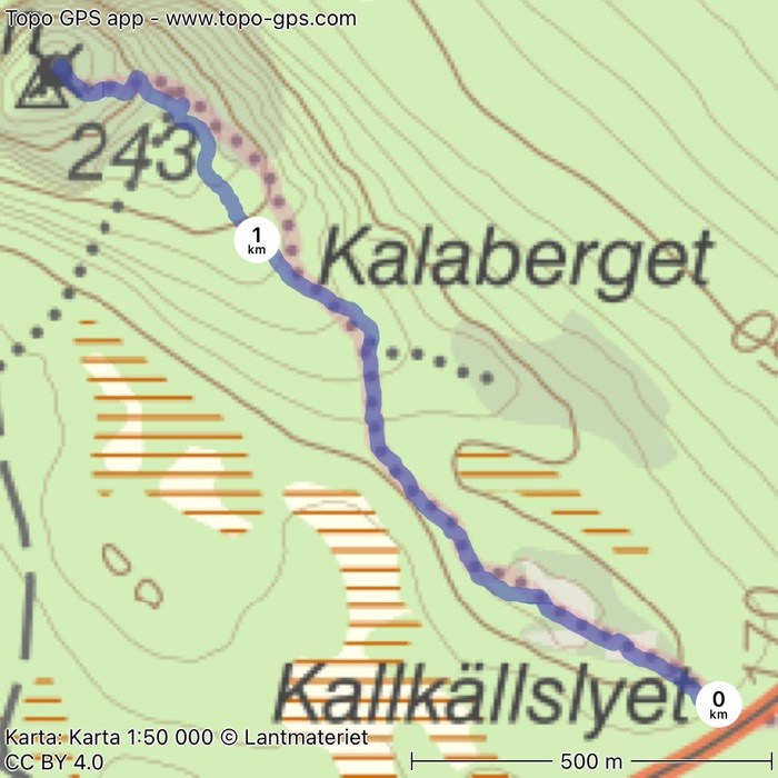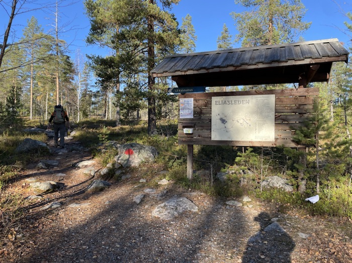 Vid starten på leden fanns en parkering, karta och ett dass. Kalahatten nås via Eliasleden.