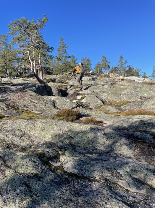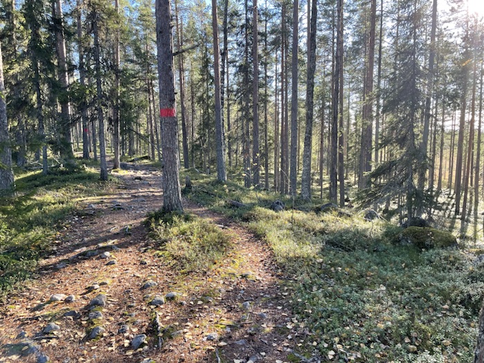 Leden gick genom fin skog. Sen kom ett parti med mycket sten i leden. Efter det ett par delar med klipphällar.