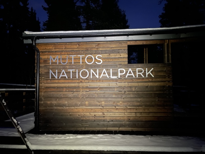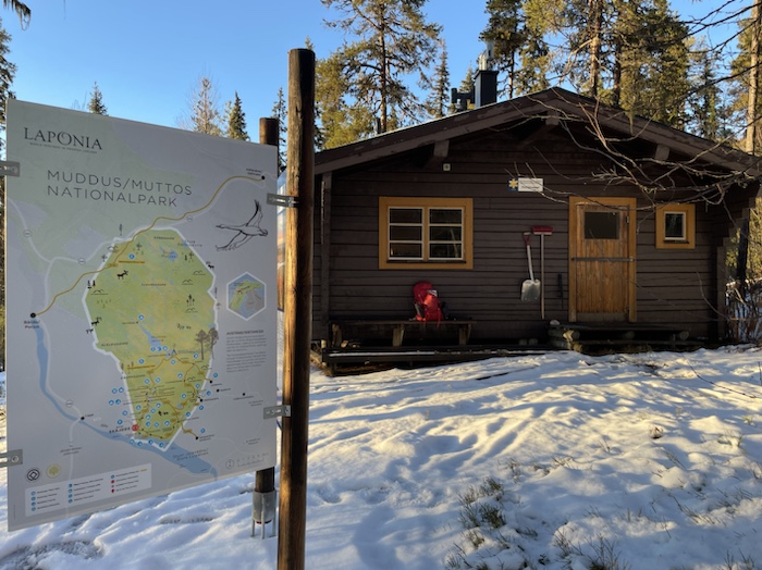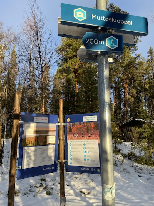 Gick tillbaka till stugan och krängde på mig ryggsäcken. Läste på informationstavlorna ”i Muddus/Muttos Nationalpark är du gäst i naturen”.