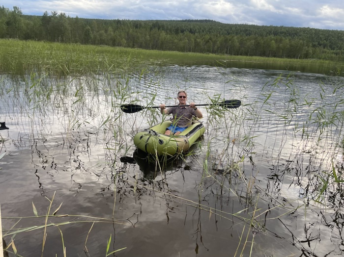 Stuggrannen Henrik lånade mig sin packraft och jag paddlade och fiskade med den i Abramsån nedströms. Jag kom så nära vattnet. Det var en riktigt rolig upplevelse och jag villhöver en packraft 2023. Tänk att paddla mer norrut på Abramsån och fiska gädda ovanför Storforsen.
