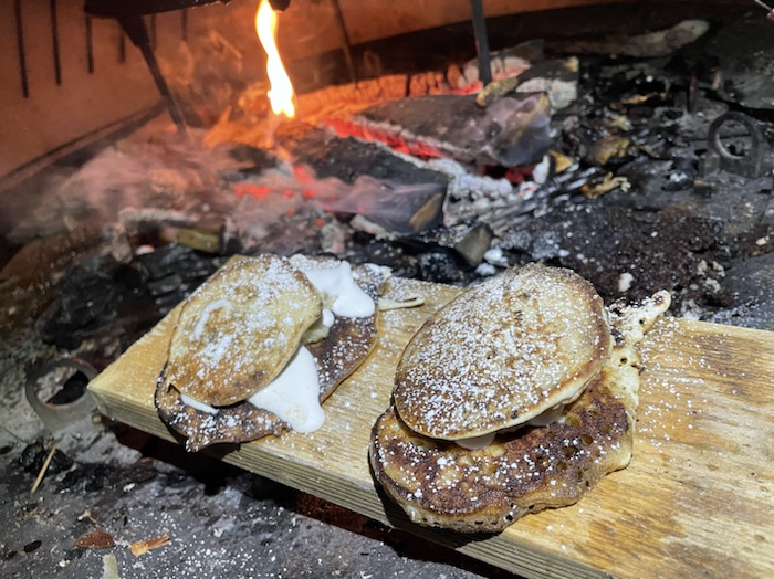 Det blev en hel del jobb med att hugga ved, elda i kaminen i stugan, koka vatten av snö och laga mat så jag orkade inte värma upp bastun och det var ganska sent. Jag gick och lade mig tidigt till brasans sprakande.