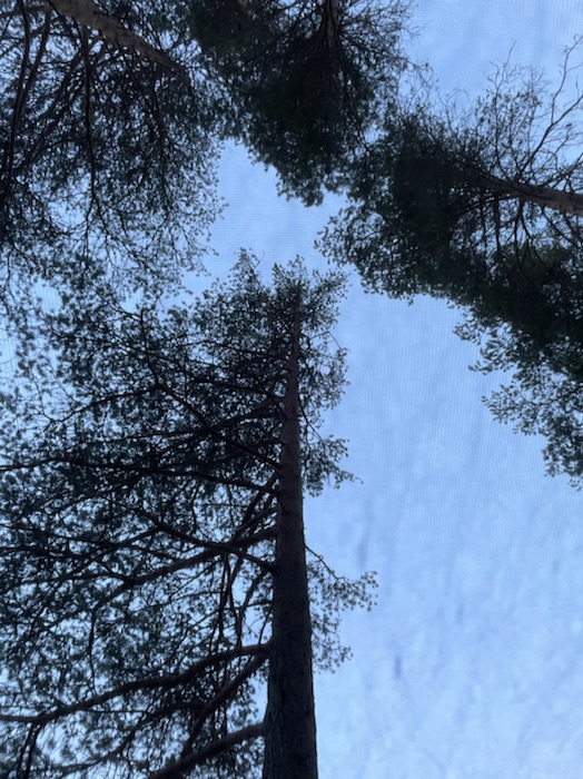 Njöt av utsikten och naturen. Då och då hördes bilar från närliggande väg 374. Sikforsens brusande ljöd på håll. Det hela var lite känslan av Henry David Thoreau vistelse vid Walden Pond som låg så nära civilisationen och järnvägen. Ett andpar flög över den spegelblanka tjärnen och landade på vattnet. Ett par med hundar vandrade runt tjärnen.