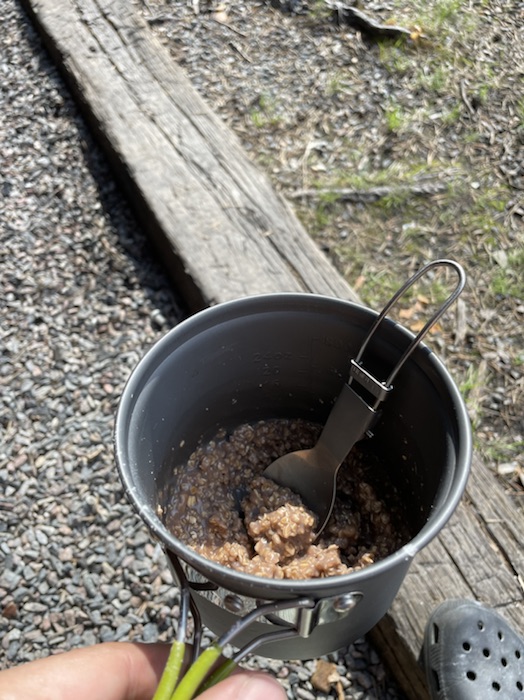 Det var dags för frukost och jag åt en färdigblandad påse från butiken Normal med havregrynsgröt med banan och chokladsmak. Hade inget hampapulver, russin och havremjölk till gröten som jag brukar. Åt ett ägg och te till. Ringde och gratulerade min dotter som fyllde år denna dag. Fortsatte lyssna på Peter Gabriel och Book of Love.