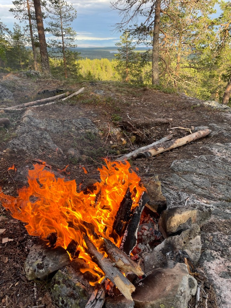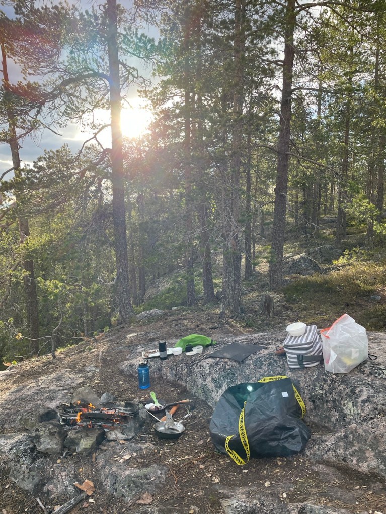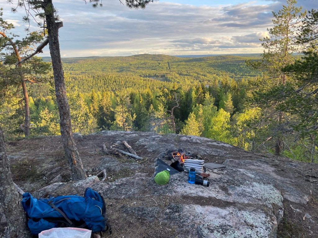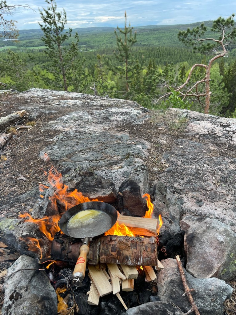 Hittade en fin plats med utsikt mot vindsnurrorna i Markbygden. Stekte på vegansk ost i stekpannan.