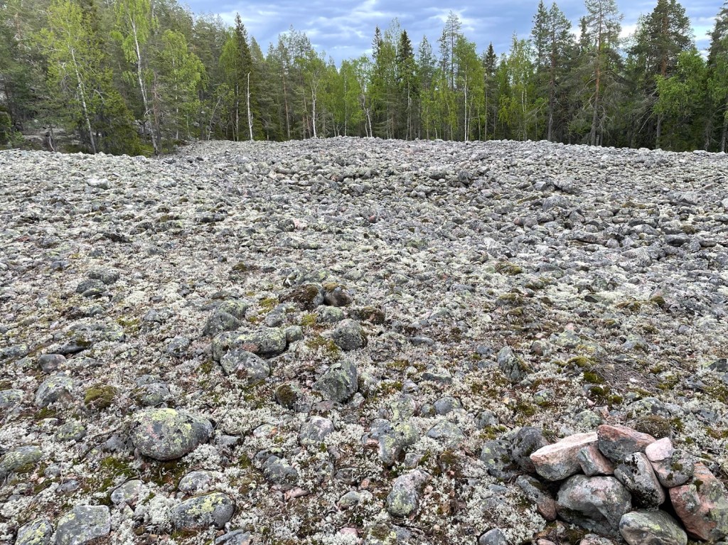 Efter maten var det dags för en tur runt toppstigen. Passerade ett klapperstensfält med flera eldplatser och sittplatser.
