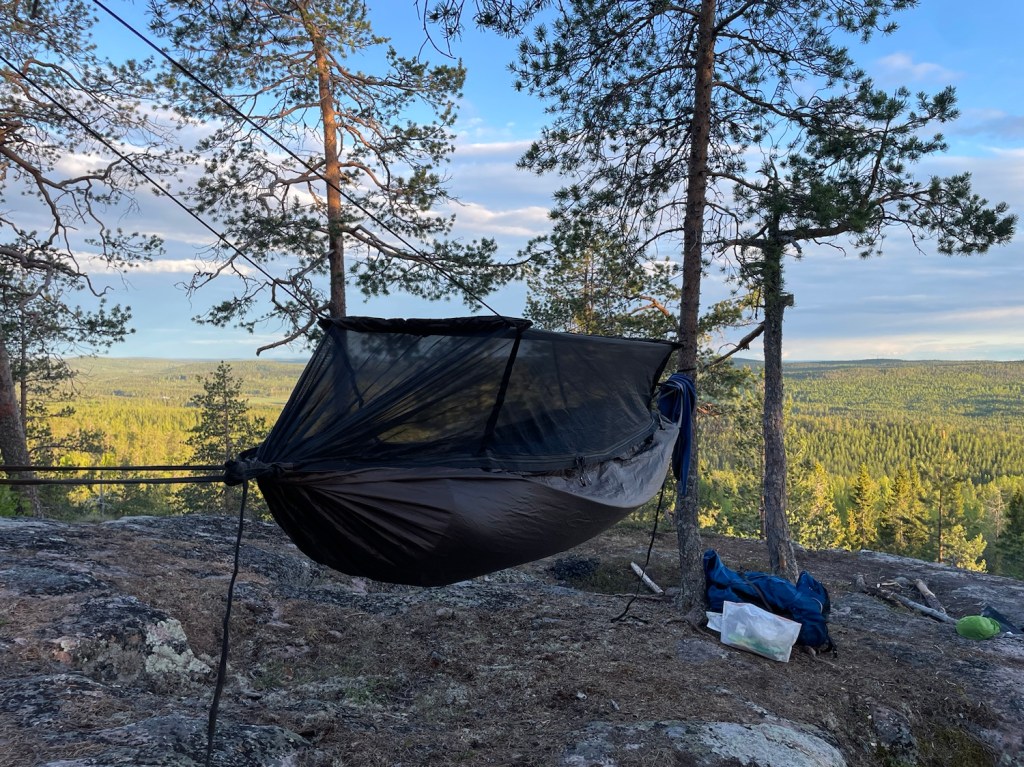 När desserten var avslutad var det dags att hänga upp hängmattan.