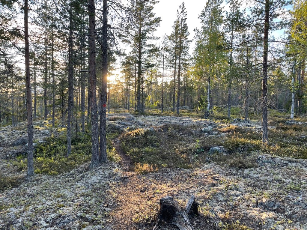 Hade läst i en Facebookgrupp om Stor-Klöverberget som ligger nära Klöverträsk utanför Luleå och blev inspirerad att besöka berget. Veckan innan vandrade jag där och parkerade då vid skolan den gången. Denna gång kände jag till en parkering närmare bergstoppen. Ställde bilen vid vändplanen och startade min vandring rakt fram i nedanstående bild. Det finns välmarkerade mtb-leder i området.