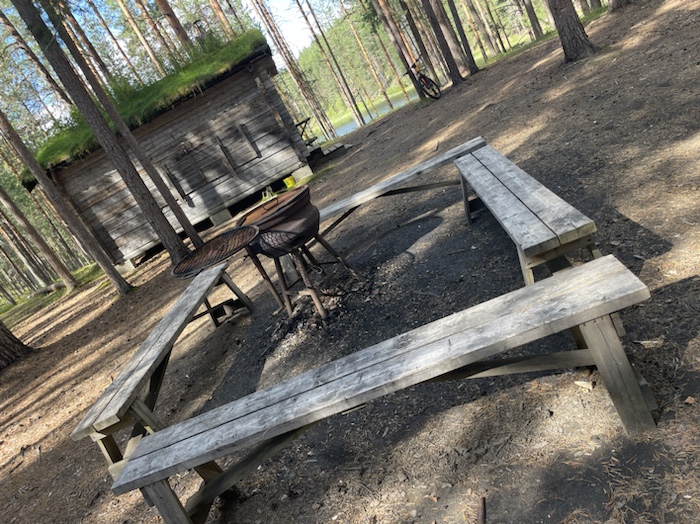 Kokade vatten till te i trangiakastrullen på stekhällen. Det körde ner två män på motorcyklar som kom till mig och undrade om jag skulle sova där. De kom från Nederländerna och hade kört upp till Nordkap och var nu på väg söderut. De hade besökt hotellet i Överkalix och träffat en vän som jobbade där. De reste sina tält lite längre bort.