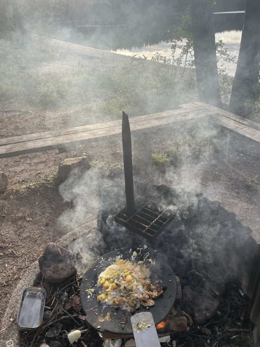 Stekte sen potatis, lök, tonfisk och ägg på stekhällen. Det blev riktigt gott och mycket mat. Jag var mycket hungrig efter den ansträngande cykelturen.