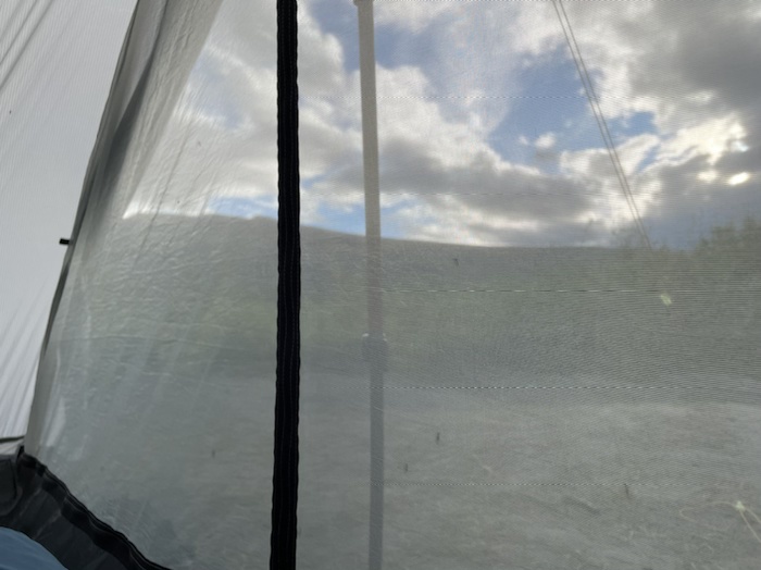 Det hade kommit i massor med mygg i tältet men de flesta höll sig högst upp i taket. Laddade mobilen och klockan. Lyssnade lite på musik som var nedladdad.