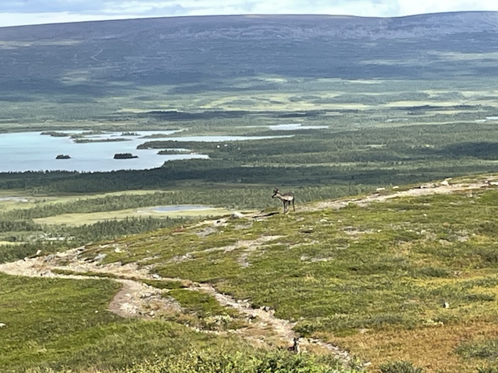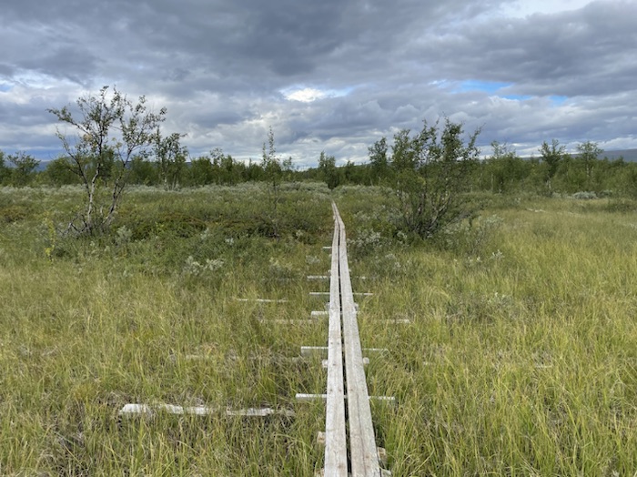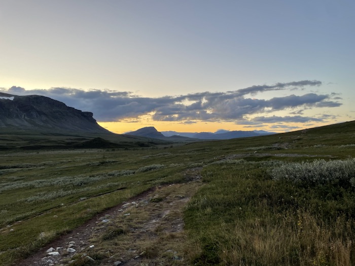 Jag stannade en kort stund vid STF Aktse. Butiken var stängd just då. Stugvärden varnade för en hel del kommande regn. Fyllde på vatten och åt en powerbar inför den branta stigningen upp på kalfjället längs en liten upptrampad stig som kallas Kungsleden.