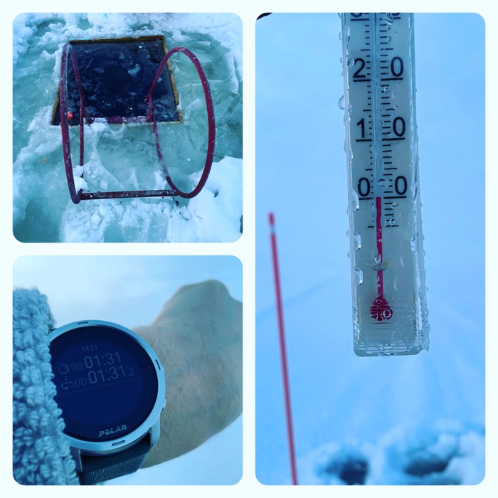 Blev flera vinterbad vid min stuga och ett särskilt kallt vinterbad i Luleå som gjorde att jag bestämde mig för att ta en lång paus med kalla bad. Frös så otroligt om fötterna efter badet och under den efterföljande utematlagningen.