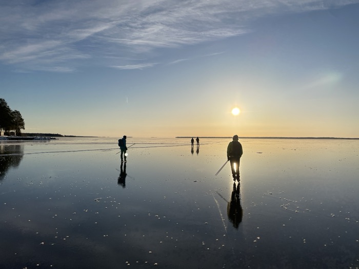Under november månad ville jag åka långfärdsskridskor. Hittade två medåkare i Facebookgruppen Långfärdsskridskor i Norr. Vi startade vid Södra Hamnplan i Luleå och åkte via Sandön och till Junkön. Det var en fantastisk dag ute på isen med vissa partier som var spegelblanka på västra sidan om Sandön. Lyckonivån blev skyhög. Det blev min andra film på Youtube från denna turen.