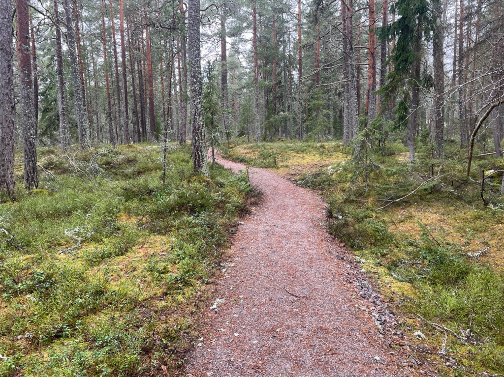 Hittade till Grubban och fann en parkering. Startade min vandring på en grusbeklädd stig in i Gråberget naturreservat.