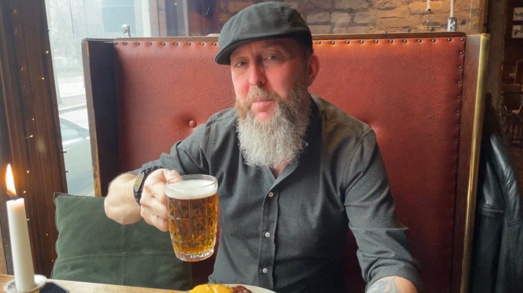 Tennstopet var en mysig pub/restaurang. Kenneth skulle snart påbörja en vandring på Vikingaleden. Det var trevligt att träffa honom igen efter vår vandring på Höga Kustenleden.