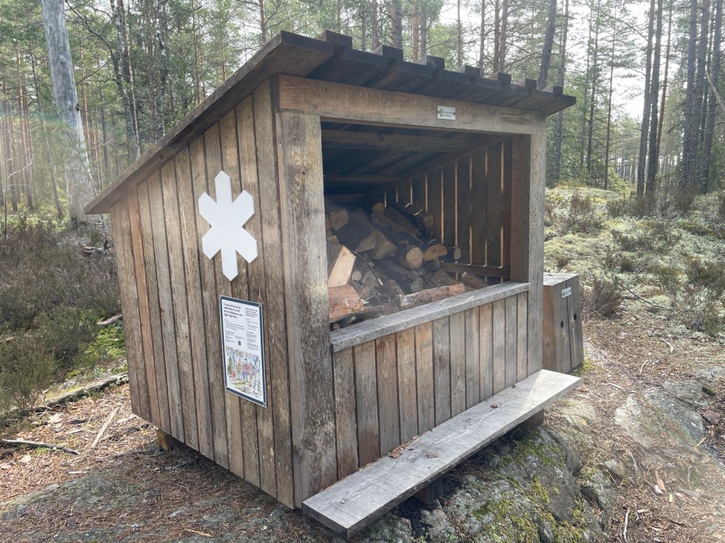 När vi närmade oss Stora Envättern fanns det en välfylld vedbod och en informationsskylt för naturreservatet.